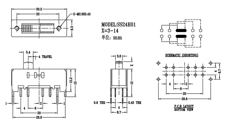 微型撥動(dòng)開關(guān)技術(shù)參數(shù):