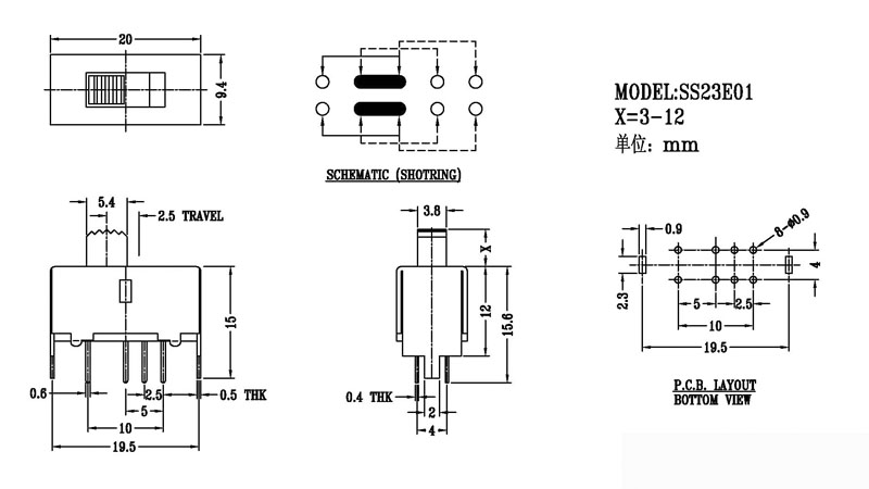 微型撥動(dòng)開關(guān)技術(shù)參數(shù):