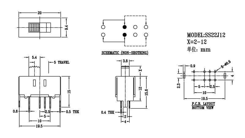 撥動開關是通過撥動開關柄使電路接通或斷開,從而達到切換電路的目的的。撥動開關常用的品種有單極雙位、單極三位、雙極雙位以及雙極三位等,它一般用于低壓電路,具有滑塊動作靈活、性能穩定可靠的特點,撥動開關主要廣泛用于:各種儀器/儀表設備,各種電動玩具,傳真機,音響設備,醫療設備,美容設備,等其它電子產品領域。