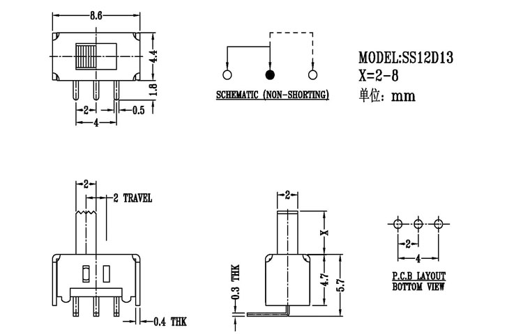 微型撥動開關技術參數: