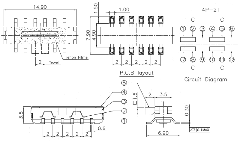 微型撥動(dòng)開(kāi)關(guān)技術(shù)參數(shù):