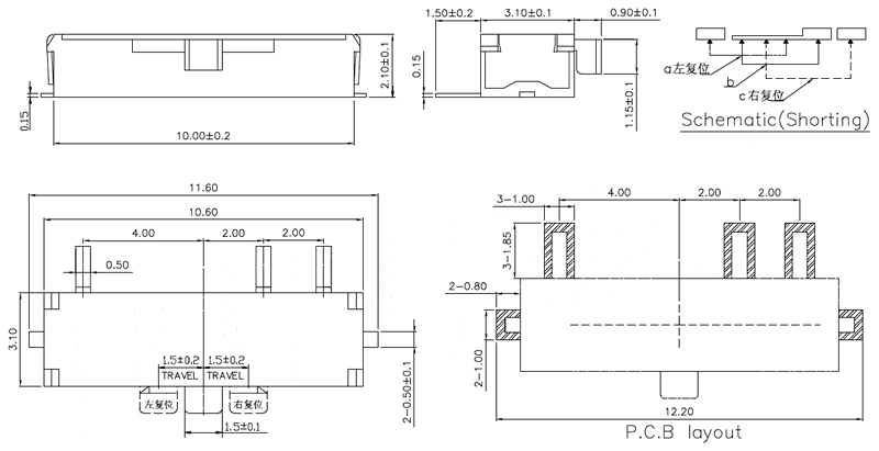 微型撥動開關技術參數: