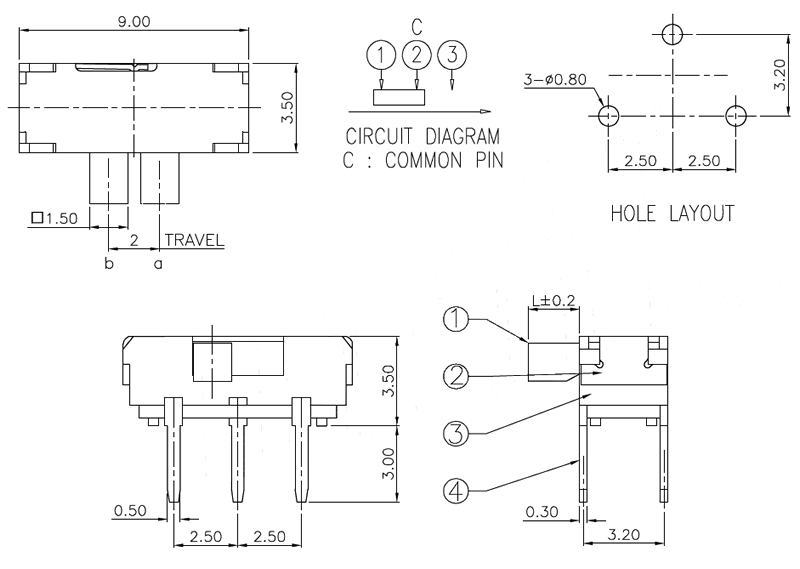 微型撥動(dòng)開關(guān)技術(shù)參數(shù):